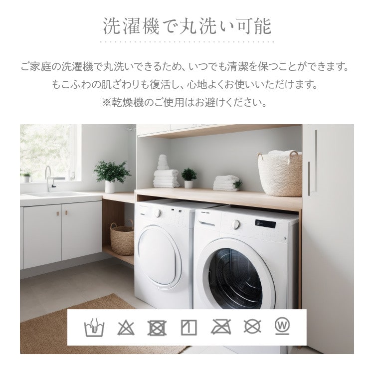 洗濯機で丸洗い可能なので、いつでも清潔にご使用いただけます。