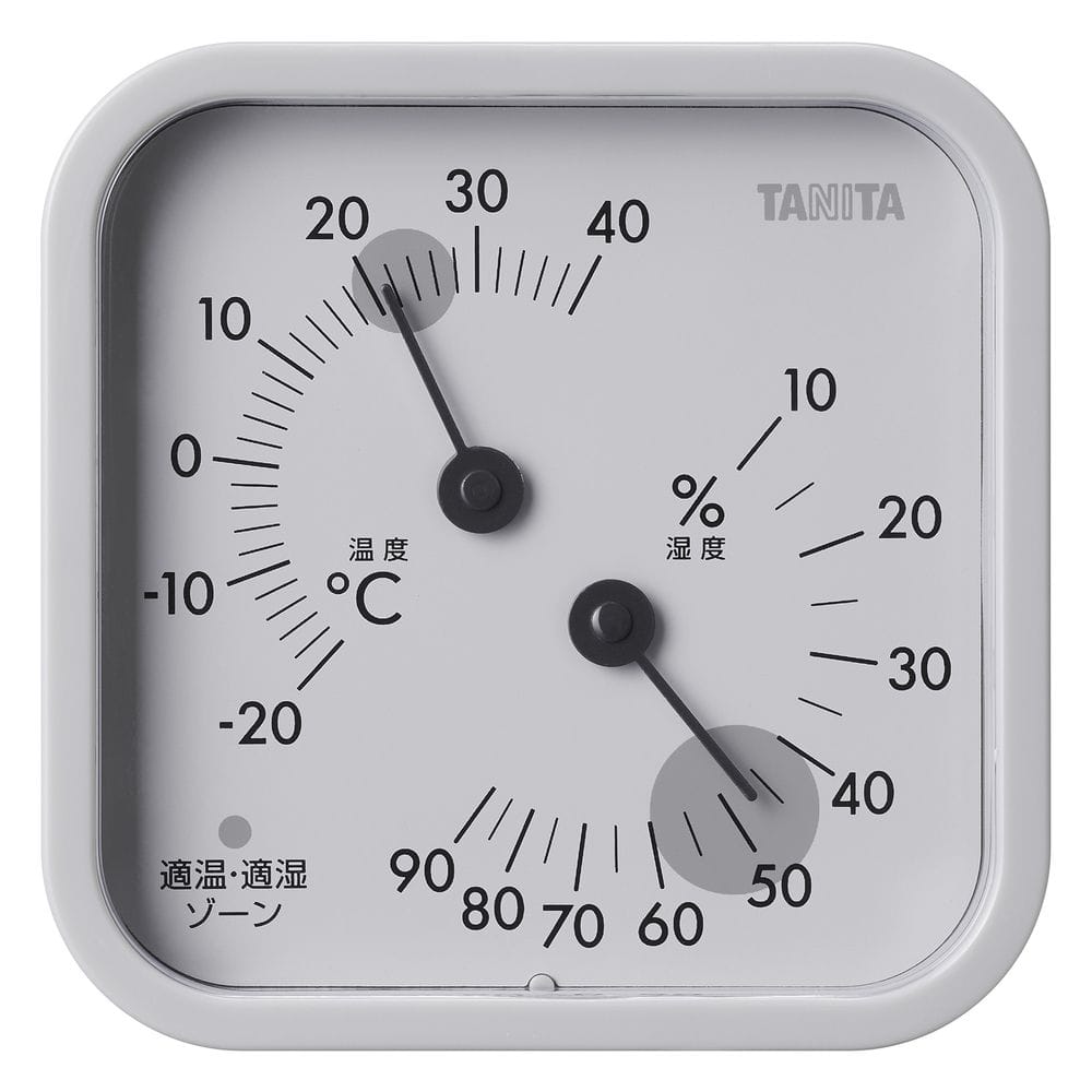 【商品説明】気軽に置けるコンパクトなデザインのアナログの温湿度計。【商品仕様】●商品サイズ(cm)幅約7.5×奥行約3×高さ約7.5●商品重量約70g●電源3V DC 単3形乾電池×2本●材質ABS、PMMA●測定範囲温度:-20~40℃湿度:10~90%●最小表示温度:2℃湿度:5%●測定精度温度:-20~40℃ ±2℃湿度:35~75% ±5% それ以外 ±10%●その他機能フック穴、マグネット●付属品取扱説明書(保証書付)●カラーブルーグレー(TT-587-BL)ウォームグレー(TT-587-GY)アイボリー(TT-587-IV)