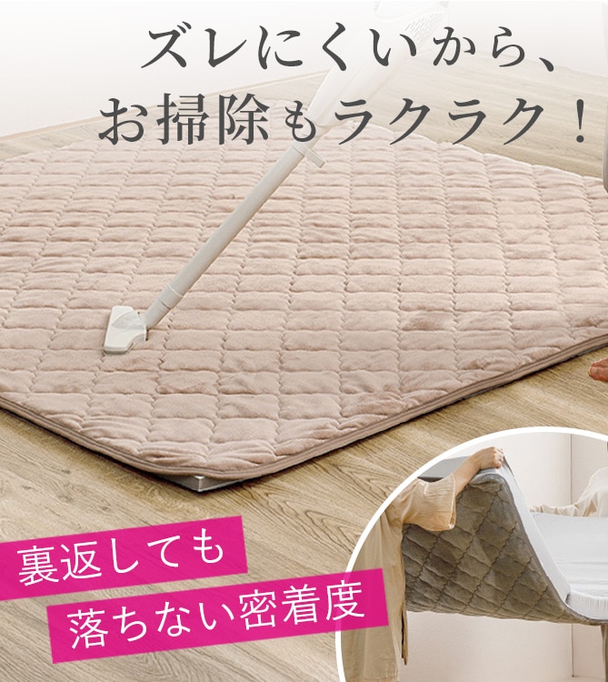 【商品説明】実用新案取得の特殊製法で、繊維と繊維が吸着することにより「絶対ズレない」を実現した「ピターらシリーズ」専用のアンダーラグとラグパッドを重ねるだけ!アンダーラグは高反発ウレタンなのでふっくら。ごろごろと寝転びたくなる気持ち良さです。【商品仕様】●商品サイズ(cm)幅約175×奥行約230×高さ約2●材質表面:ポリエステル (ピタ―ら)中材:ウレタンフォーム20mm裏面:ポリエステル