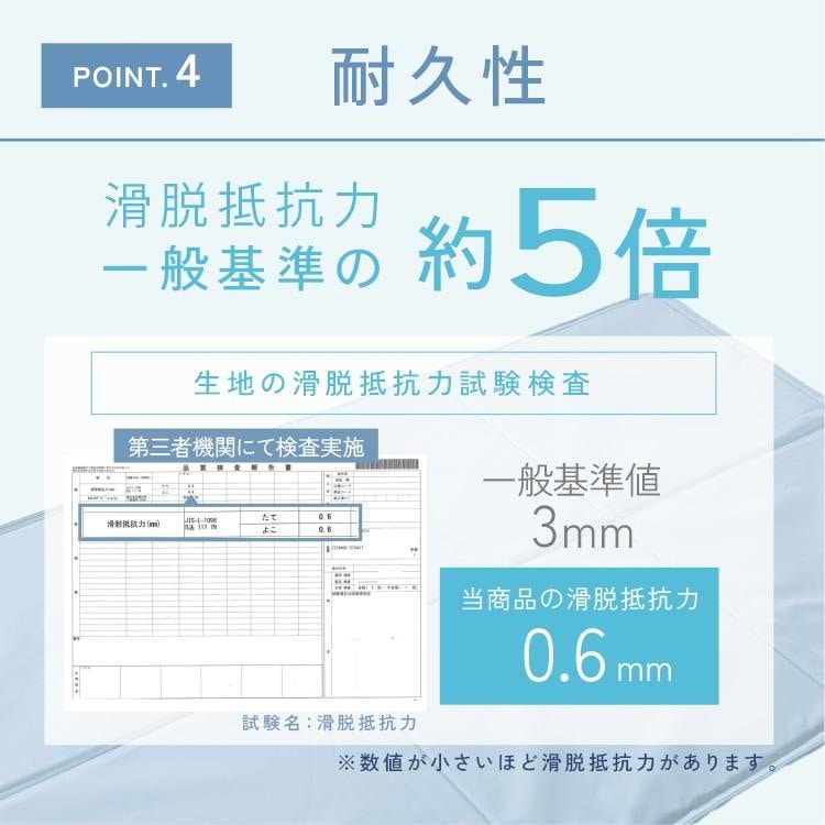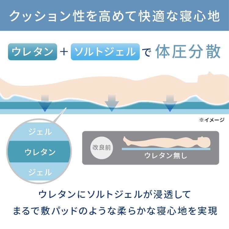 【商品説明】2025年4月16日 サイズ追加しました! 瞬間冷却ジェル+持続冷感性+ウレタン入りで、冷たさ長持ち&ウレタンが入っているのでもっちり感のあるジェルマットです。 ●商品サイズ(cm)/ 商品重量 幅約56×奥行約31 / 約800g 幅約90×奥行約140 / 約5.1kg ●材質 側地:ポリエステル100%(PVCフィルム加工) 中層:ウレタンフォーム 中身:硫酸ナトリウム10水和物、水、カルボキシメチルセルロース ●お手入れ方法 本製品はお洗濯できません。 汚れが付いた場合は中性洗剤を含ませて硬く絞った布で拭き、よく乾燥させてからご使用ください。