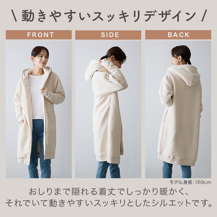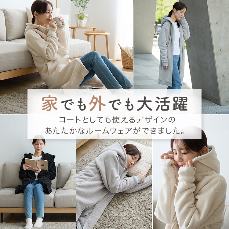 片面フランネルボアのコートにもなるお出かけ出来るルームウェアです。