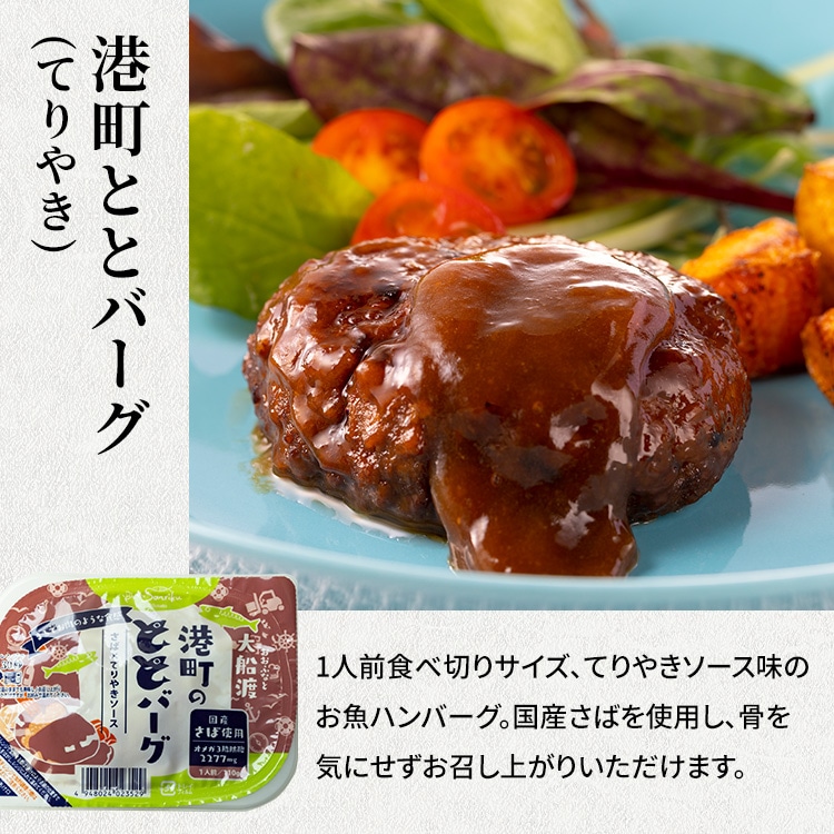 【商品説明】『大船渡港町のととバーグ』は、国産の小サバを原料に使用した、まるでお肉のような食感のお魚(とと)ハンバーグです。オメガ3脂肪酸の豊富なさばに加え、アマニ油も使用した、まるでお肉のような食感のおさかなハンバーグです。ソースは老若男女に好まれる定番のデミグラスソースにしました。※リニューアルに伴い、パッケージ・内容等予告なく変更する場合がございます。予めご了承ください。【商品仕様】●商品サイズ(cm)幅約13×奥行約9.8×高さ約3.3●商品重量約1.1kg●材質さば(国産)、野菜(じゃがいも、にんじん、たまねぎ)、粒状大豆たん白、植物油脂(アマニ油、なたね油)、ウスターソース、トマトケチャップ、砂糖、ショートニング、マーガリン、野菜ペースト調味料、生クリーム、コンソメ粉末、トマトペースト、レモン果汁、ビーフペースト、にんにくペースト、ポークペースト、食塩、しょうゆ、こんにゃく粉、白こしょう、ナツメグ/増粘剤(加工でん粉、増粘多糖類)、膨張剤、調味料(アミノ酸等)、着色料(カラメル、カロテン)、環状オリゴ糖、酸化防止剤(V.C、V.E、茶抽出物)、香料、酸味料、(一部に小麦・乳成分・牛肉・さば・ゼラチン・大豆・鶏肉・豚肉を含む)●商品区分一般食品●原材料商品規格に記載●成分エネルギー200kcalタンパク質12.1g脂質12.5g炭水化物9.8g食塩相当量1.3gDHA748mgEPA330mgα-リノレン酸1507mg●原産国日本●アレルギー物質小麦・乳成分・牛肉・さば・ゼラチン・大豆・鶏肉・豚肉