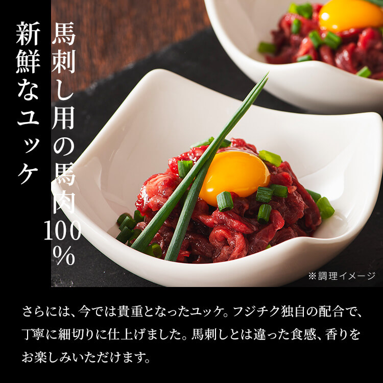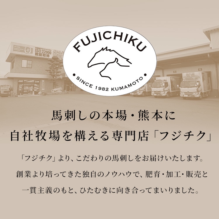 馬刺しの本場・熊本に自社牧場を構える専門店「フジチク」より、こだわりの馬刺しをお届けいたします。