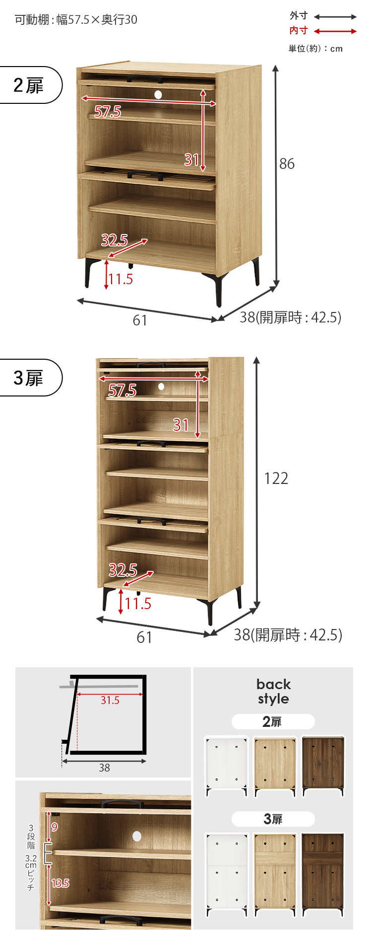 幅約61×奥行約38(開扉時42.5)×高さ約122