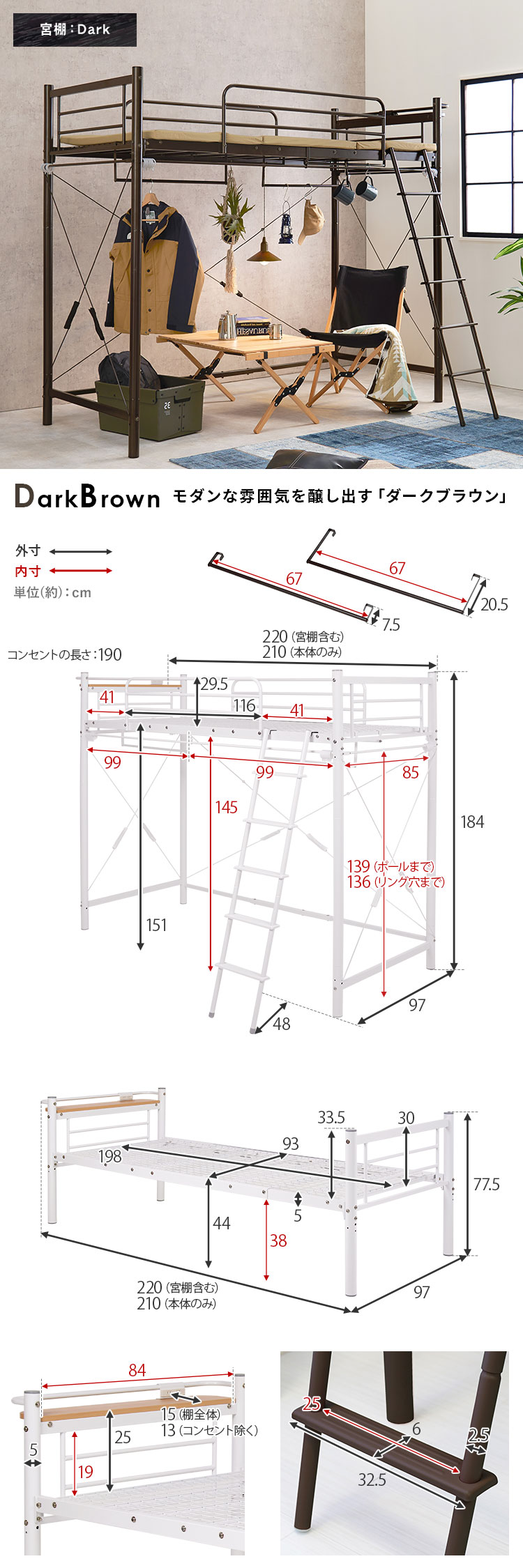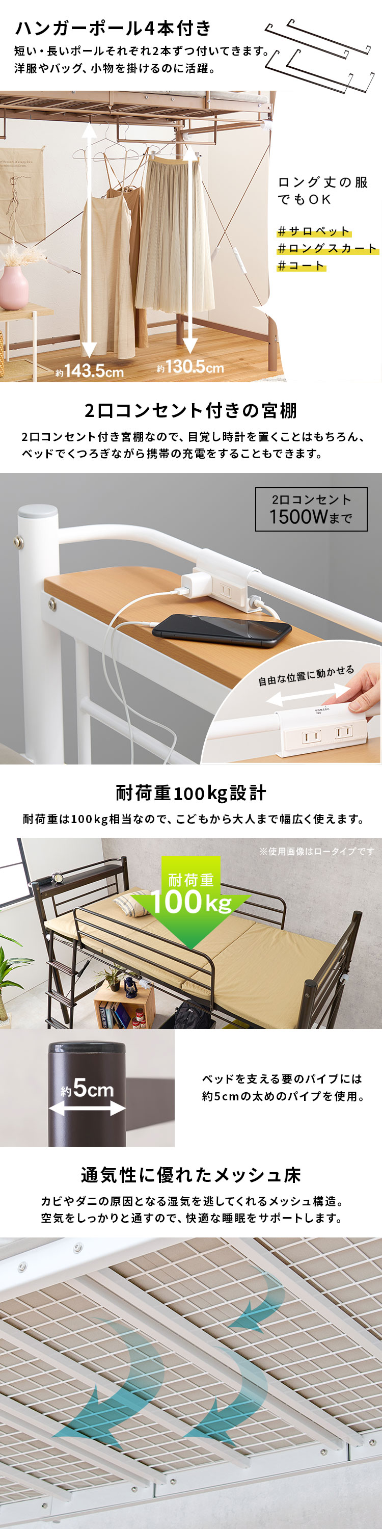 ロフトベッド <br>ロフトベッド ロータイプ ミドルタイプ ハイタイプ カーテン取付 パイプベッド 子供部屋 ベッドフレーム コンセント付き かわいい 【TD】 【代引不可】