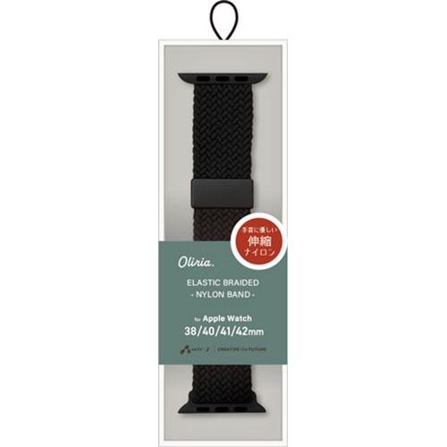 エアージェイ(air-j) AWB-5 BK Apple Watch バンド 伸縮ナイロン 38mm/40mm/41mm/42mm 対応