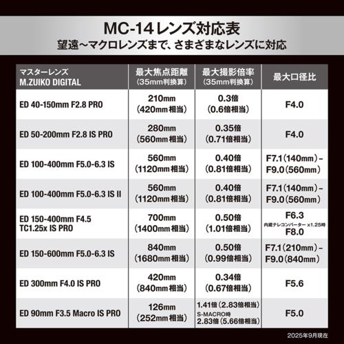 同梱品:MC-14用フロントキャップ(BC-3)、レンズリアキャップ(LR-2)、レンズケース(LSC-0603)、取扱説明書、保証書