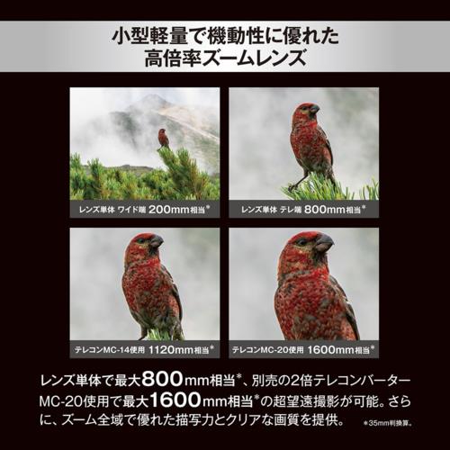焦点距離(35mm判換算):200-800mm相当
