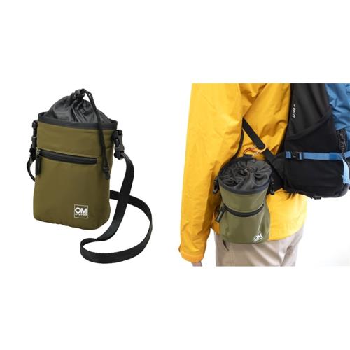 ・市販のカラビナと製品背面の固定紐でリュックのショルダーハーネスへの装着が可能