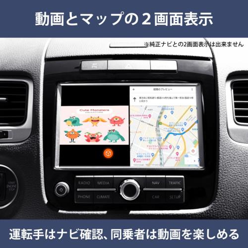 運転席からはナビを見て助手席からは動画が見られる、2画面同時表示が可能です。