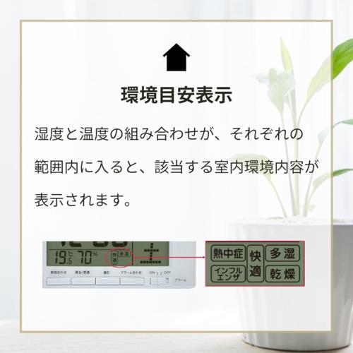 デジタル表示により、温度・湿度・時間が一目で確認できるため、高齢者や子供部屋などにもおすすめです