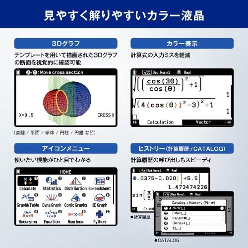 2Dグラフ機能、3Dグラフ機能、ダイナミックグラフ機能、テーブル機能、漸化式機能、