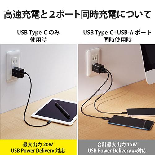 定格出力電流:USB Type-C(TM)(USB-C(TM))ポートのみ使用時:5V時3A / 9V時2.22A、 USB-Aポートのみ使用時:5V時2.4A、 2ポート同時出力時:合計最大15W