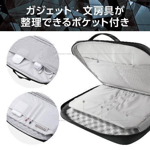 ポケット(気室内):オープンポケット(ストレッチメッシュ)×2、オープンポケット×2、ペン用オープンポケット×2