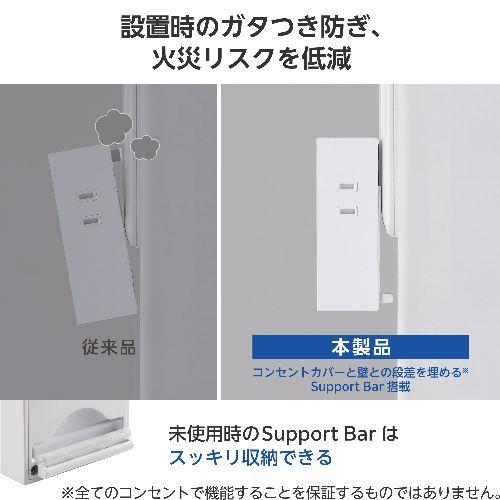 その他:設置時のガタつきを抑えるSupport Barを装備 ※全てのコンセントで機能することを保証するものではありません。
