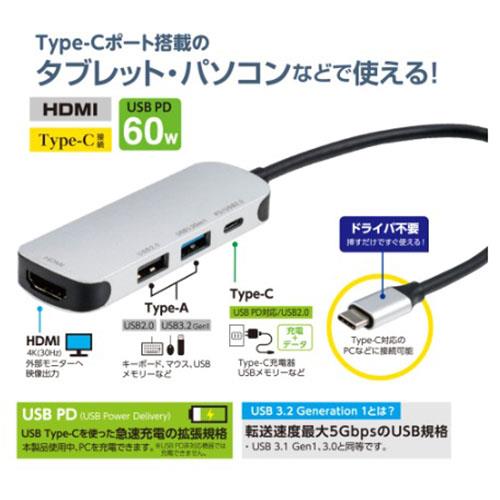 インターフェース ダウンストリーム(接続機器側):USB Type-A(USB3.2Gen1)メスx1、USB Type-C(USB2.0 Alt mode非対応)メスx1、USB Type-A(USB2.0)メスx1、HDMI(タイプA)メスx1