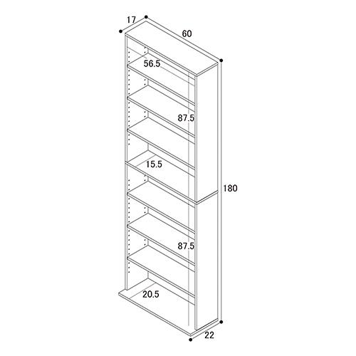 商品詳細サイズ:上段内寸約W56.5×D15.5×H87.5cm 下段内寸約W56.5×D15.5(20.5)×H87.5cm、可動棚6枚(上段下段ともに3.2cmピッチ21ヶ所移動可)奥行は本体部分約17cm、地板約22cm