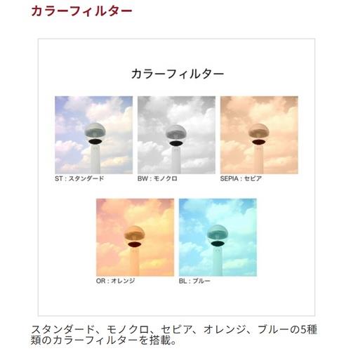 スタンダード、モノクロ、セピア、オレンジ、ブルーの5種類のカラーフィルターを搭載。