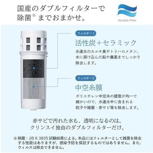 除去性能:(浄水器協会で定められた規格基準に挙げられている除去対象物質):・アルミニウム(中性)・鉄(微粒子状)・PFOSおよびPFOA※PFOS:ペルフルオロオクタンスルホン酸 PFOA:ペルフルオロオクタン酸