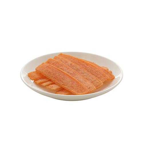 素材:肉類(鶏ささみ)、でん粉、食塩、グリセリン、プロピレングリコール、保存料(ソルビン酸K)、酸化防止剤(ビタミンC)、発色剤(亜硝酸Na)