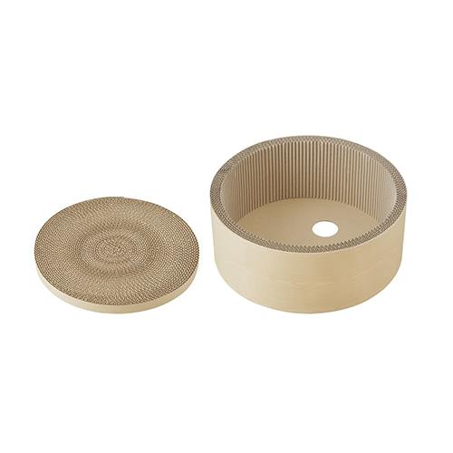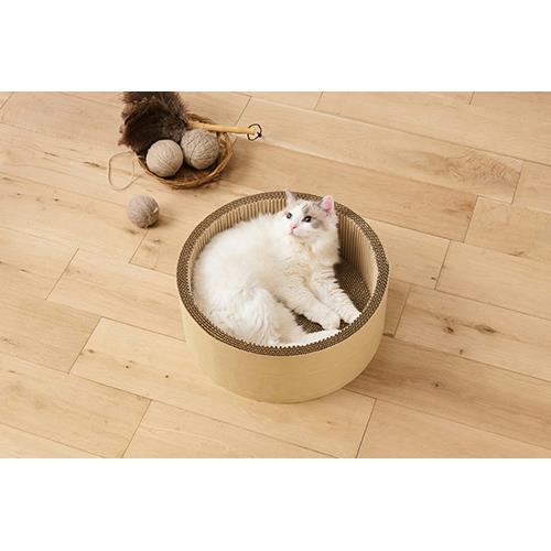 ■猫がゆっくりくつろげるゆったりサイズのボウルタイプのモチーフ爪とぎです。爪とぎは別売のボウルタイプ交換用で交換可能です(モチーフ爪とぎボウルタイプ交換用3個セット)。底面の爪とぎは取り外しでき、両面使用可能です。目が粗い段ボールを使用しており、研ぎカスが出にくいです。