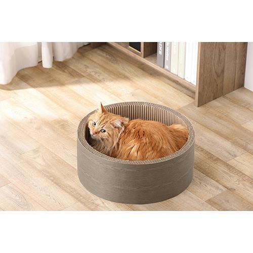 ■猫がゆっくりくつろげるゆったりサイズのボウルタイプのモチーフ爪とぎです。爪とぎは別売のボウルタイプ交換用で交換可能です(モチーフ爪とぎボウルタイプ交換用3個セット)。底面の爪とぎは取り外しでき、両面使用可能です。目が粗い段ボールを使用しており、研ぎカスが出にくいです。