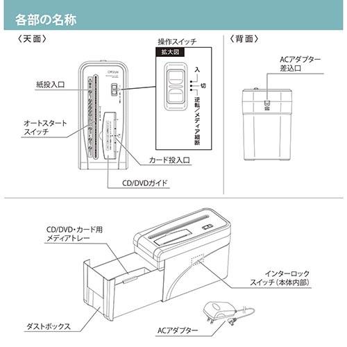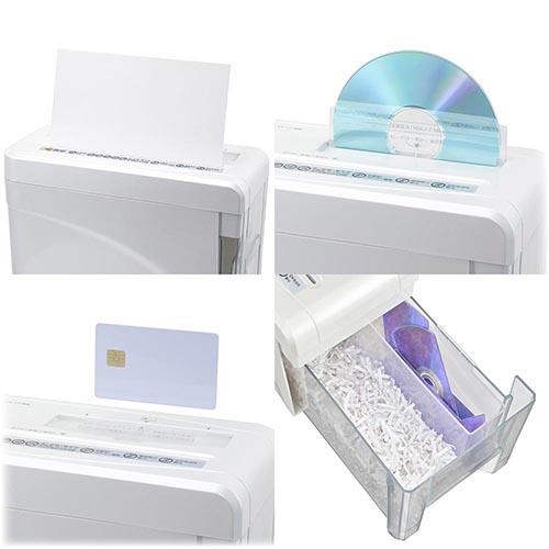 最大細断枚数:紙…A4コピー用紙(64g/m2)2枚、CD/DVD・カード…1枚