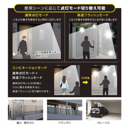 センサー:検知方式…焦電型赤外線センサー、検知範囲…最大約140°最長約8m(取り付け高さ約2mの場合)向き調節可能左右各105°