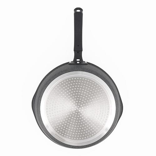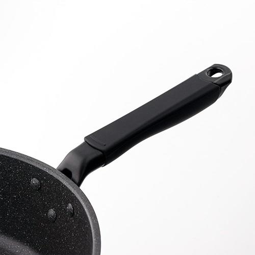 素材・材質:本体/アルミニウム合金、はり底/ステンレス鋼(クロム16%)(底厚2.7mmはり底含む)(DP28cmは2.8mm)、ハンドル/フェノール樹脂(耐熱温度150℃)、ナイロン(耐熱温度100℃)、内面/ふっ素樹脂塗膜加工、外面/マーブル調焼付塗装