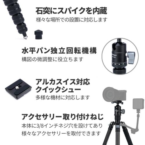 ロック力の強力な自由雲台を搭載(水平パン独立回転機構付き)