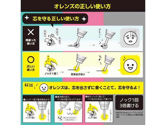 ペン先が紙面から離れるたびに、自動で芯が出てくる機構を搭載。最初のワンノックだけで、芯がなくなるまで書き続けられます。●軸色:●ブラック●芯径:0.3mm●長さ:143mm●消しゴム付●材質:先金・ノック/真鍮、前軸/ナイロン+鉄、後軸/ABS、クリップ/鉄●替え消しゴム品番:PPE-2●注文単位:1本