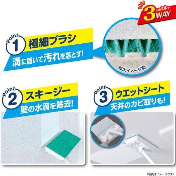 スキージー付きなので、お掃除後や入浴後の水切りにお使いいただけます。
