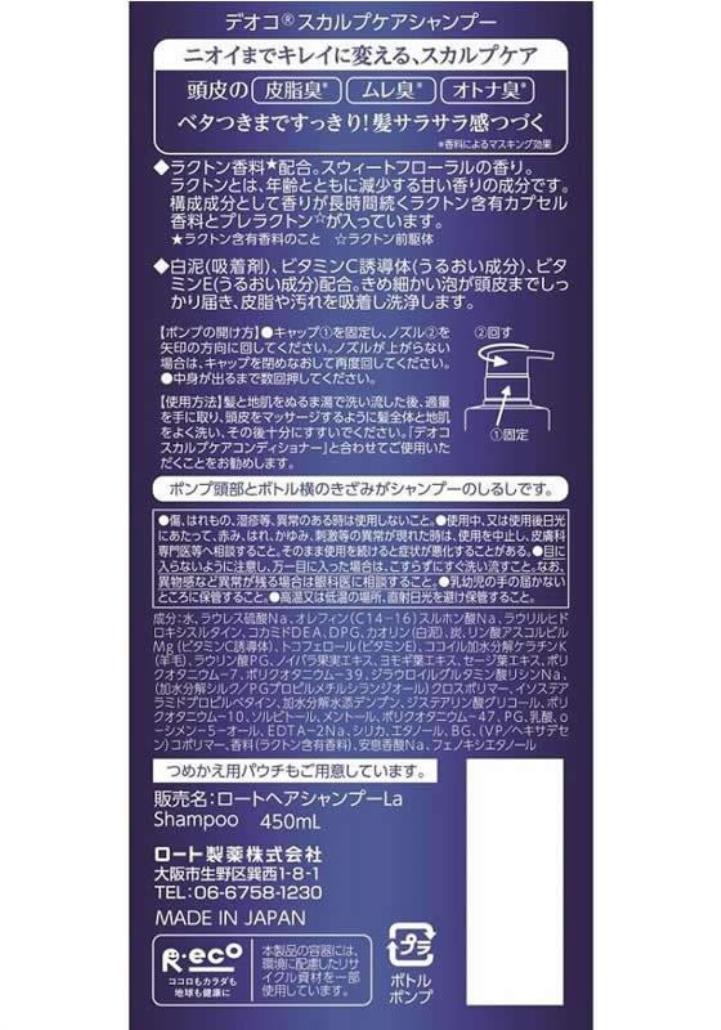 ロート製薬 デオコ スカルプケアシャンプー 450mL[代引不可]【仕入先直送品A】