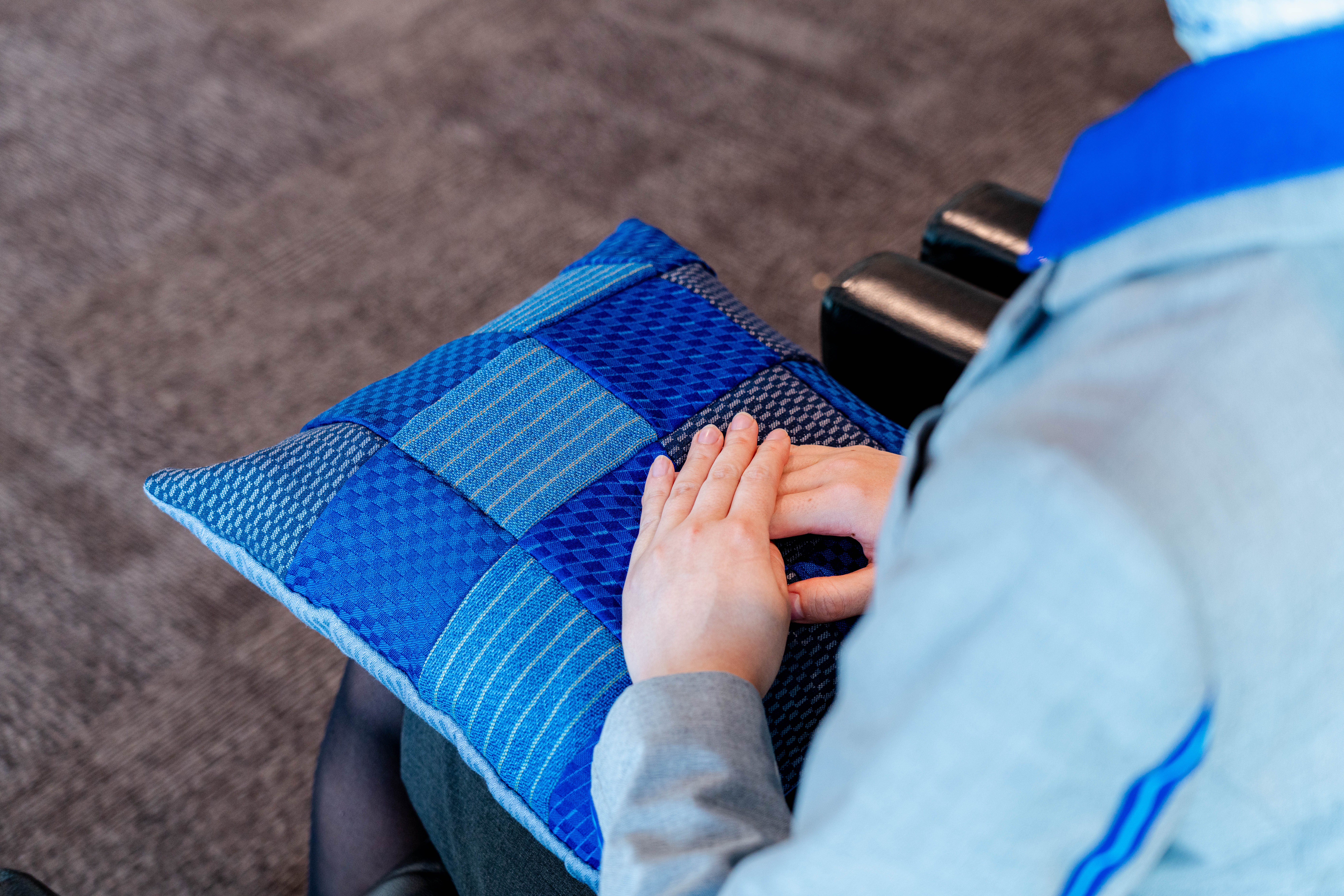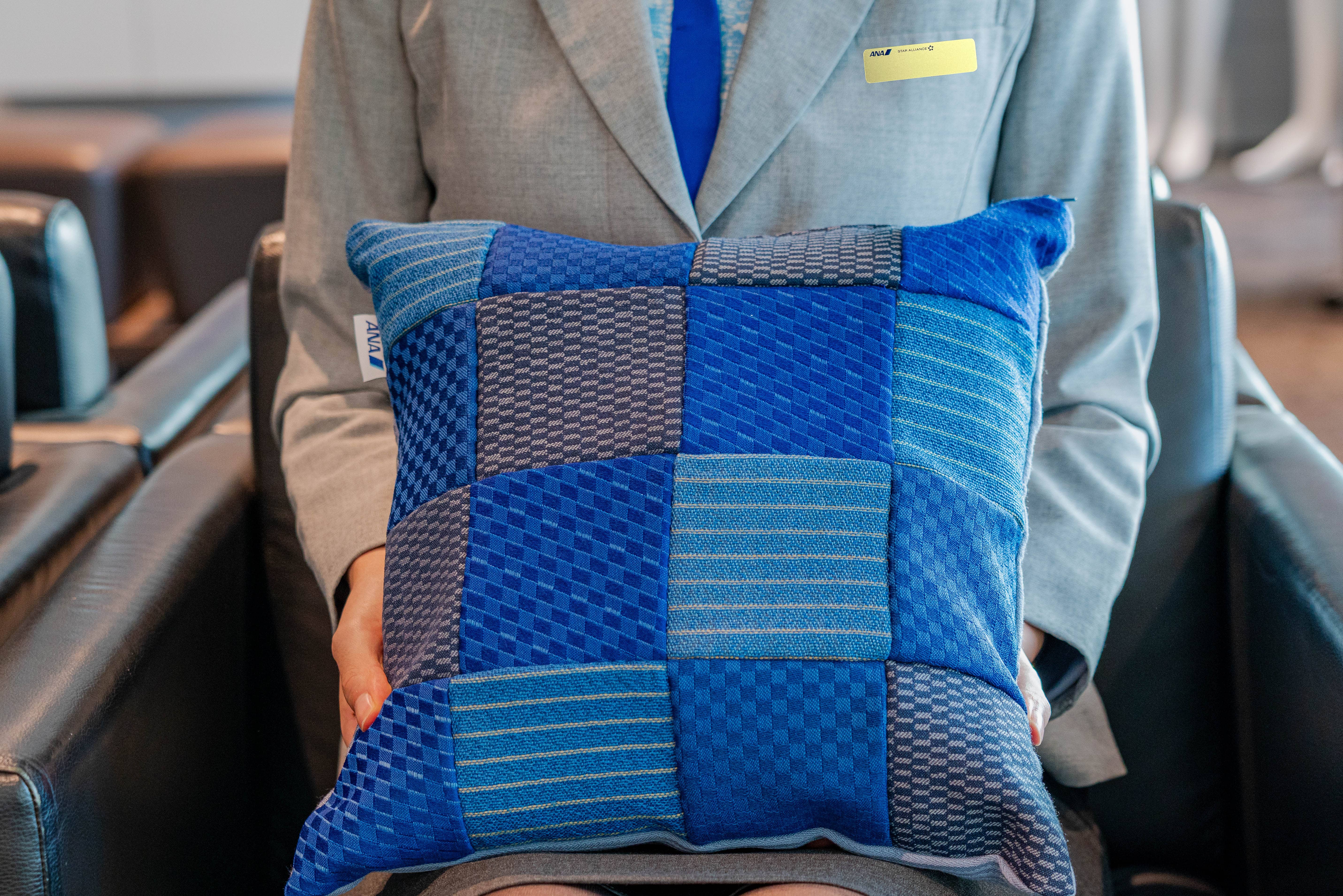 この度、皆様の旅の思い出とともにある、航空機のシートカバーが、お部屋を彩るインテリアとして 生まれ変わりました。ANAがお届けする特製「パッチワーククッション」のご紹介です。 このクッションの一つひとつのピースは、廃棄される航空機のシートカバーからルームシューズを 製作した後の切れ端から作成したもの。 型を抜いた後に残った端切れを、無駄にはしたくない・・・。 その想いから、職人の手で切り出し一枚一枚を大切に縫い合わせました。 パッチワークには、様々な機種のシートカバーが使われています。 「この柄は、あの時の旅行で乗った飛行機かな?」「これはどの機種だろう?」 クッションを眺めながら、旅の記憶を振り返ったり、まだ見ぬ空へ想いを馳せたり。 そんな心ときめくひと時をお届けできたら、これほど嬉しいことはありません。 裏面には航空機内の普通席とプレミアムクラスを仕切るために使用されていた、客室の ギャレー(キッチン)カーテンを再利用。細部にまで空の旅の物語が息づいています。 資源を大切にする心と旅のワクワク感を詰め込んだ特別なクッションを単独で、またはルームシューズとお揃いに・・・ 特別なインテリアとしていかがでしょうか。 ■製造地 裁断:山形県 / 縫製:兵庫県 ■材質 表面生地:シートカバー:毛83~100%、他(柄によりアラミド、ポリエステル、ナイロンなど含む) 裏面生地:客室のギャレーのカーテン:毛100% 中綿 :ポリエステル100% ■サイズ・重量 サイズ:約34x34cm 重量 :約 390 g