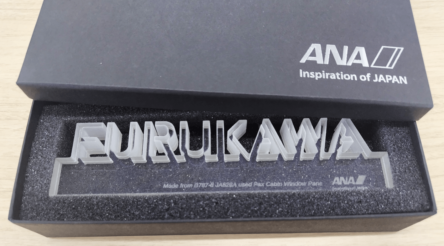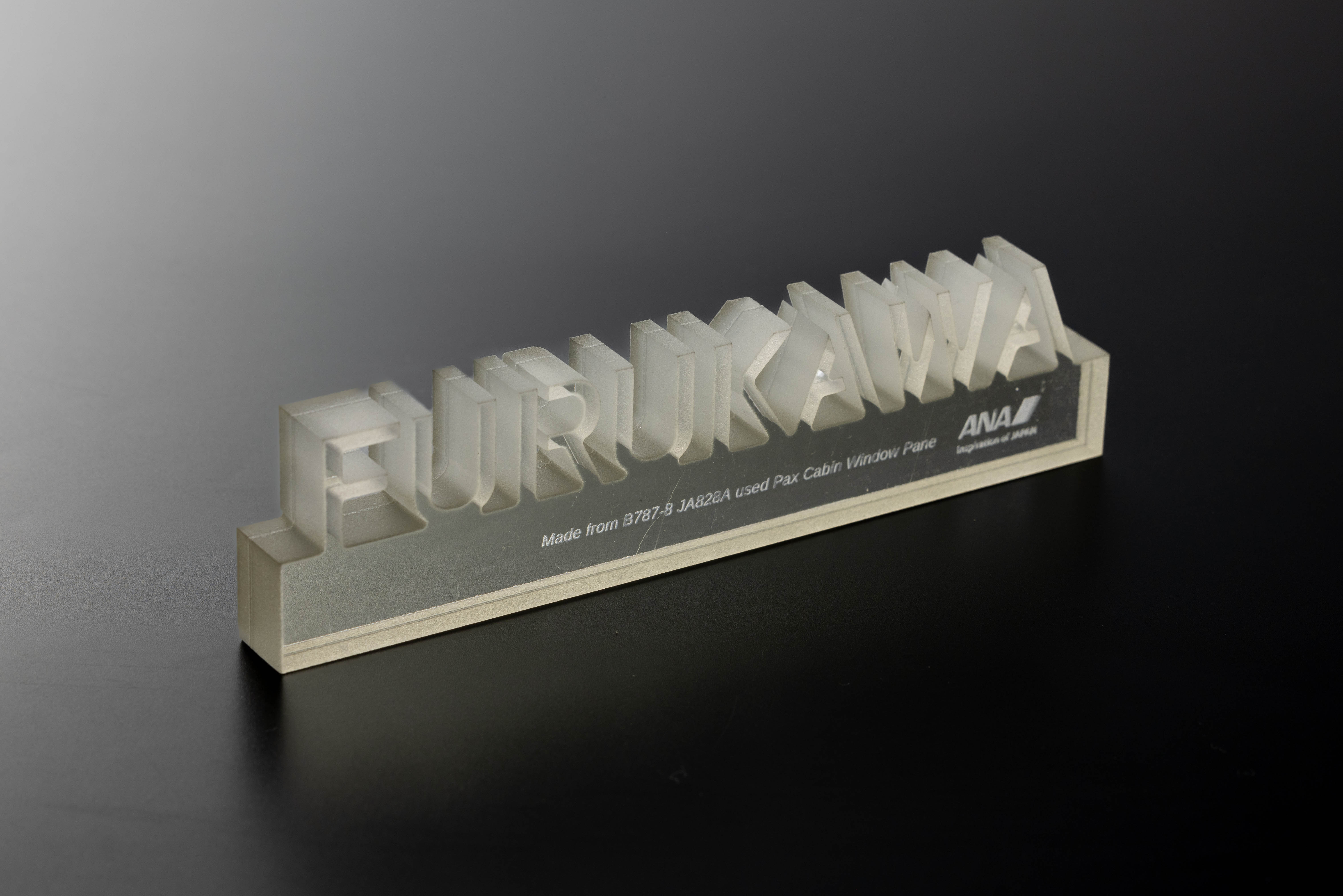 ANAのB787客室窓をアップサイクルした、あなた好みに彫刻する「ネームオブジェ」(5-8文字用)