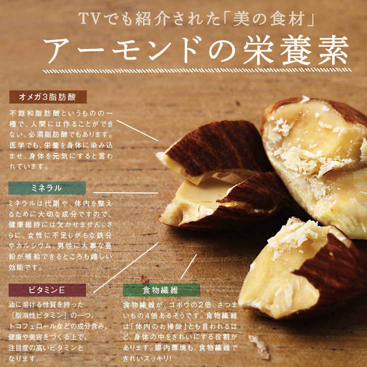 賞味期限 製造日より約180日 内容量 10kg(200g×50袋) ※2022年3月17日以降スプーンを付けておりません。 使用方法 お料理やお菓子の材料にお使い下さい 原材料 アーモンド※本品製造工場では、卵、乳、小麦、落花生、えび、かに、くるみ、アーモンド、カシューナッツ、ごま鯖、いか、マカデミアナッツ、大豆、バナナ、りんご、ゼラチンを含む製品を製造しています。 栄養成分 (100gあたり)エネルギー:587kcal、タンパク質:19.6g、脂質:51.8g、炭水化物:20.9g、食塩相当量:0.002g 保存方法 高温多湿、直射日光を避け涼しい所に保管してください。 製造国 アメリカ(カリフォルニア) 可能温度帯 常温 区分 食品 配送 宅配便にて発送 販売社 タマチャンショップ 宮崎県都城市平江町44-3 TEL0986-46-9669 メーカー名/広告文責 九南サービス 宮崎県都城市平江町44-3-2 TEL 0986-22-2852