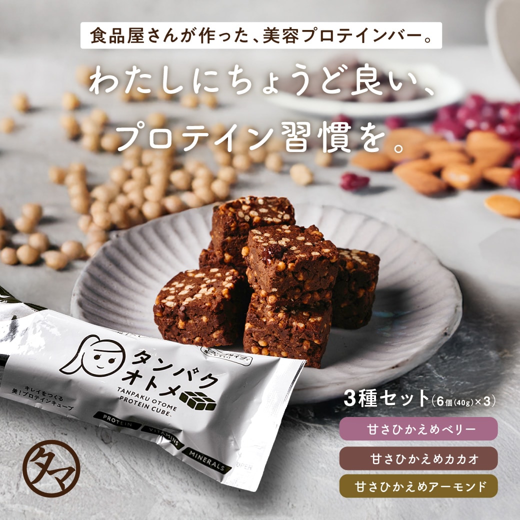 タンパクオトメキューブ8本セット【甘さひかえめカカオ】たんぱく質13gと25種類以上の美容、栄養成分が入った女性に優しいひと口サイズの美容専門キューブ型プロテインバー【送料別】タマチャンショップ