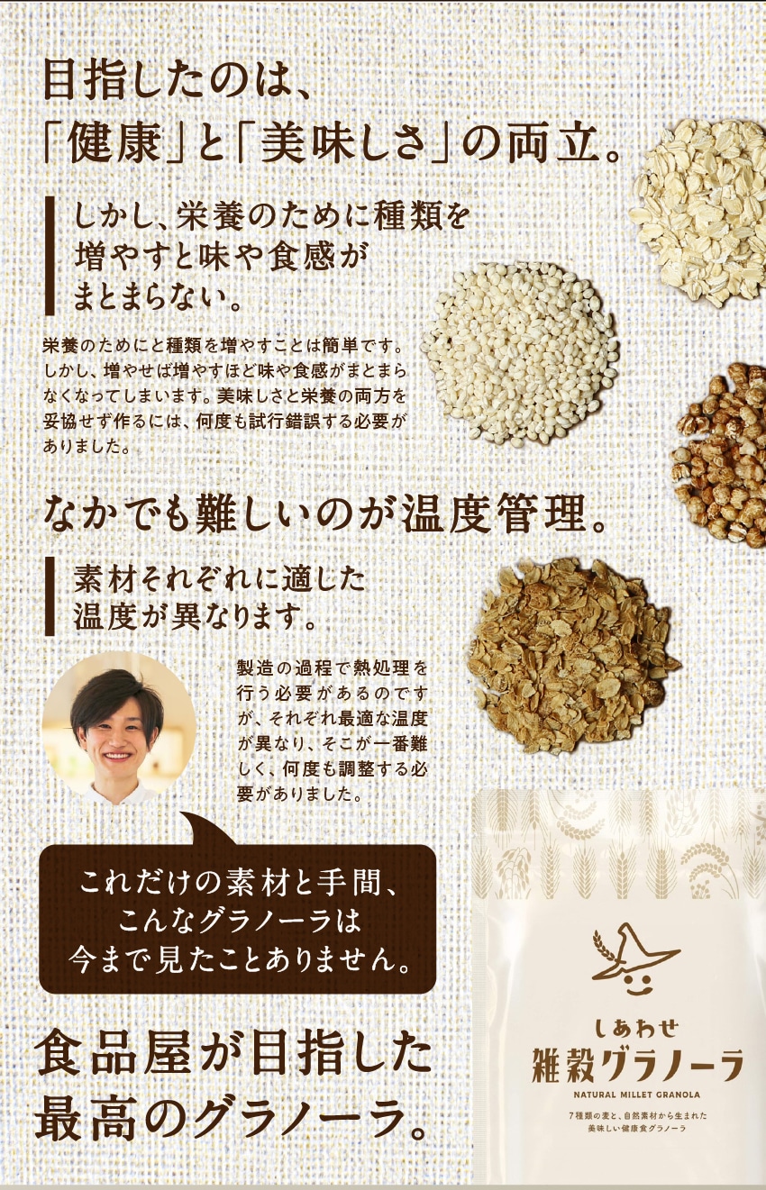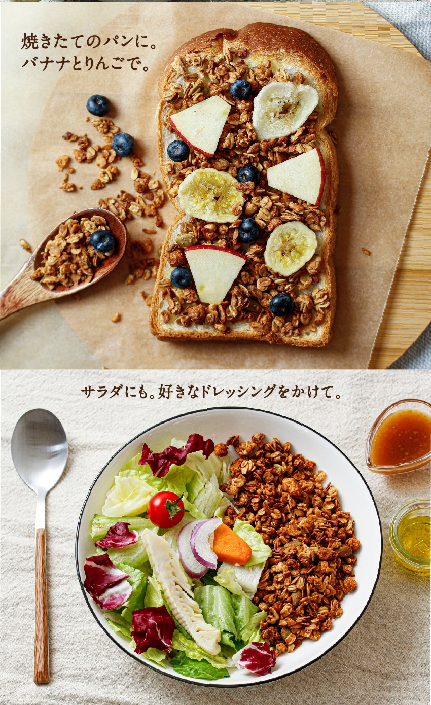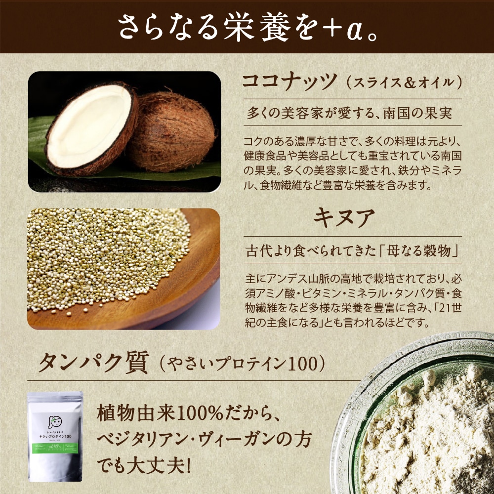 賞味期限 製造日より約6カ月 内容量 180g ジッパー式袋タイプ 使用方法 ミルクや豆乳をかけてお召し上がりください。料理などのレシピとしてもお役立て頂けます。 原材料 【カカオ】 オーツ麦(オーストラリア産)、アガベシロップ、ライ麦フレーク、ココナッツオイル、有機ココナッツスライス、大麦フレーク、カカオニブ、オーツ麦粉、はだか麦粉、もち麦粉、メープルシロップ、植物性たんぱく、カカオパウダー、はと麦、玄米フレーク、大豆パフ、キヌアパフ、食塩/保存料(亜硫酸塩)、(一部に大豆を含む) 栄養成分 (カカオ/100gあたり) エネルギー:490kcal、タンパク質:10.6g、脂質:23.4g、炭水化物:63.1g[糖質:55.2g、食物繊維:7.9g]、食塩相当量:0.28g 保存方法 高温多湿、直射日光を避け涼しい所に保管してください。 ※開封後はお早めにお召し上がり下さい。 製造国 日本(九州) 可能温度帯 常温 区分 食品 配送 2個までメール便/3個から宅配便 販売社 タマチャンショップ 宮崎県都城市平江町44-3 TEL0986-46-9669 メーカー名/広告文責 九南サービス 宮崎県都城市平江町44-3-2 TEL 0986-22-2852