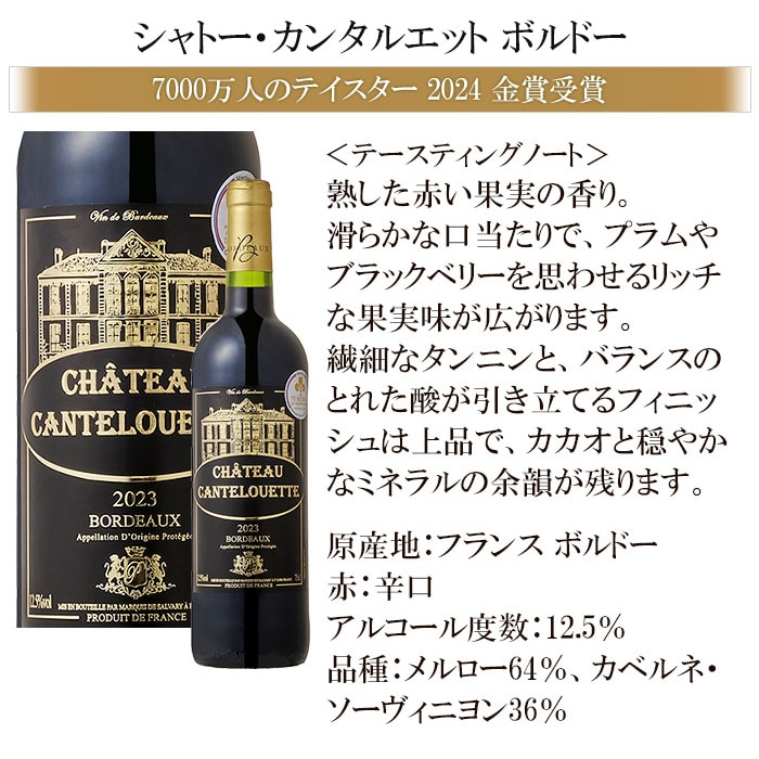 ●シャトー・カンタルエット ボルドー フランス 750ml 赤