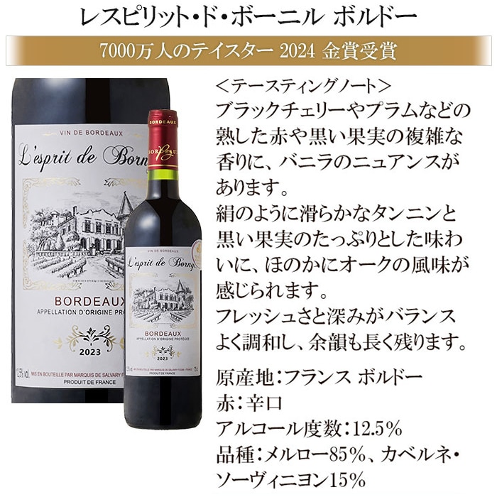 ●レスピリット・ド・ボーニル ボルドー フランス 750ml 赤