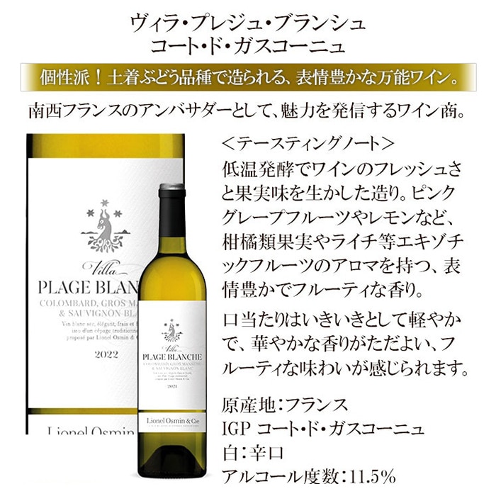 ●オレンジワイン ルーマニア 750ml 白●ヴィラ・プレジュ ブランシュ コート・ド・ガスコー フランス 750ml 白