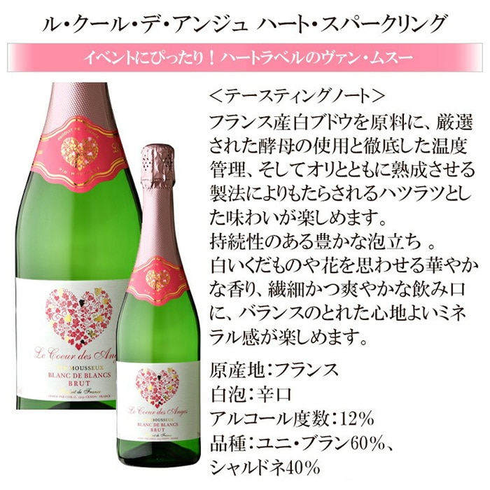 ●ル・クール・デ・アンジュ ハート・スパークリング フランス 750ml 泡●アマティスタ フィジー・マスカット DOバレンシ スペイン 750ml 泡