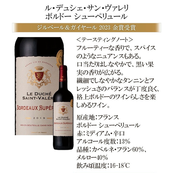 ●ル・デュシェ・サン・ヴァレ ボルドー・シューペリュール フランス 750ml 赤●コントル パロワ カベルネソーヴィニョン フランス 750ml 赤
