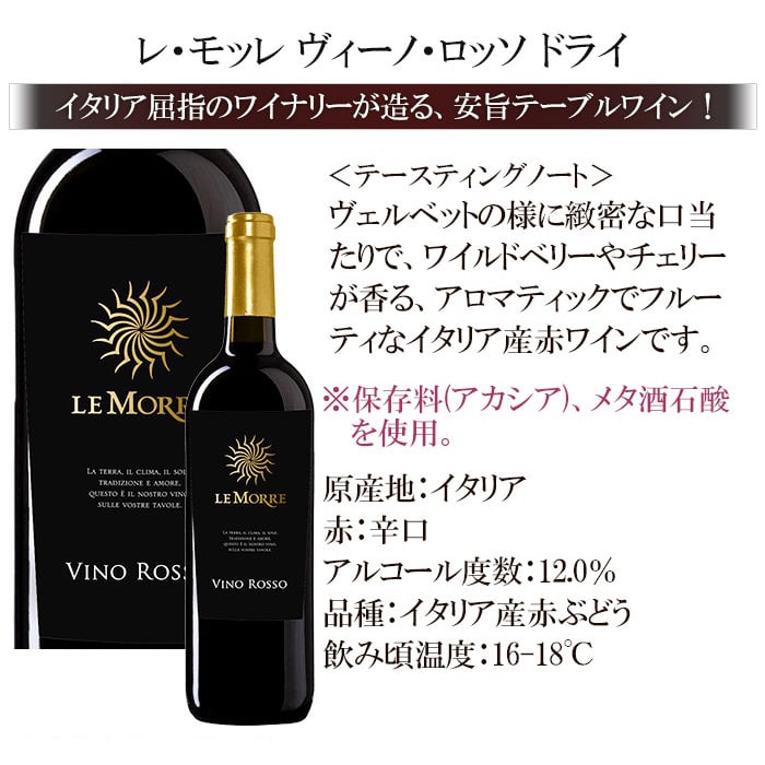 ●レ・モッレ ヴィーノ・ロッソ ドライ イタリア 750ml 赤