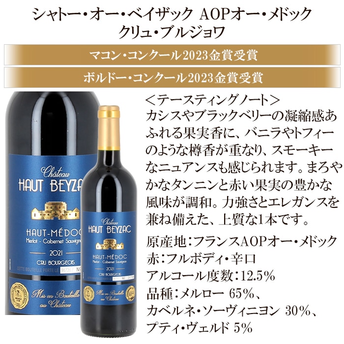●シャトー・オー・ベイザック オー・メドック・クリュ・ブルジョワ フランス 750ml 赤●レスピリット・ド・ボーニル ボルドー フランス 750ml 赤