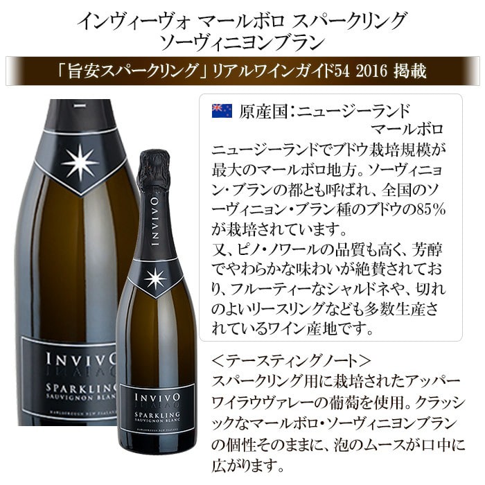 ●インヴィーヴォ スパークリング ソーヴィニヨン・ブラン ニュージーランド 750ml 白発泡性●コスタ ブリュット チリ 750ml 白発泡性