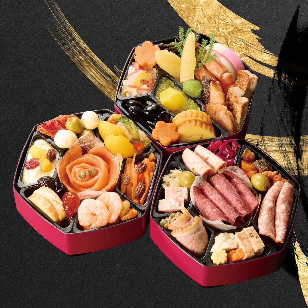■商品特徴:銀座「花蝶」総料理長監修、和洋折衷・創作おせち。伝統的な和食にフレンチやイタリアンの技法を駆使したおせちをお楽しみいただけます。 【数量限定】