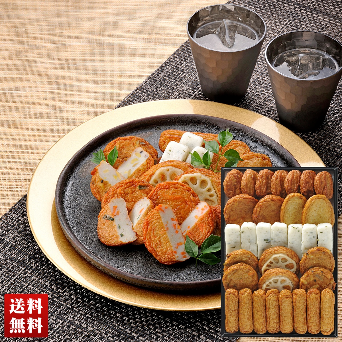 ■セット内容:棒天20g×8、ごぼう天18g・しそ棒天20g×各7、人参天40g・上揚30g・野菜天30g・れんこん揚45g・さつまいも天30g×各2