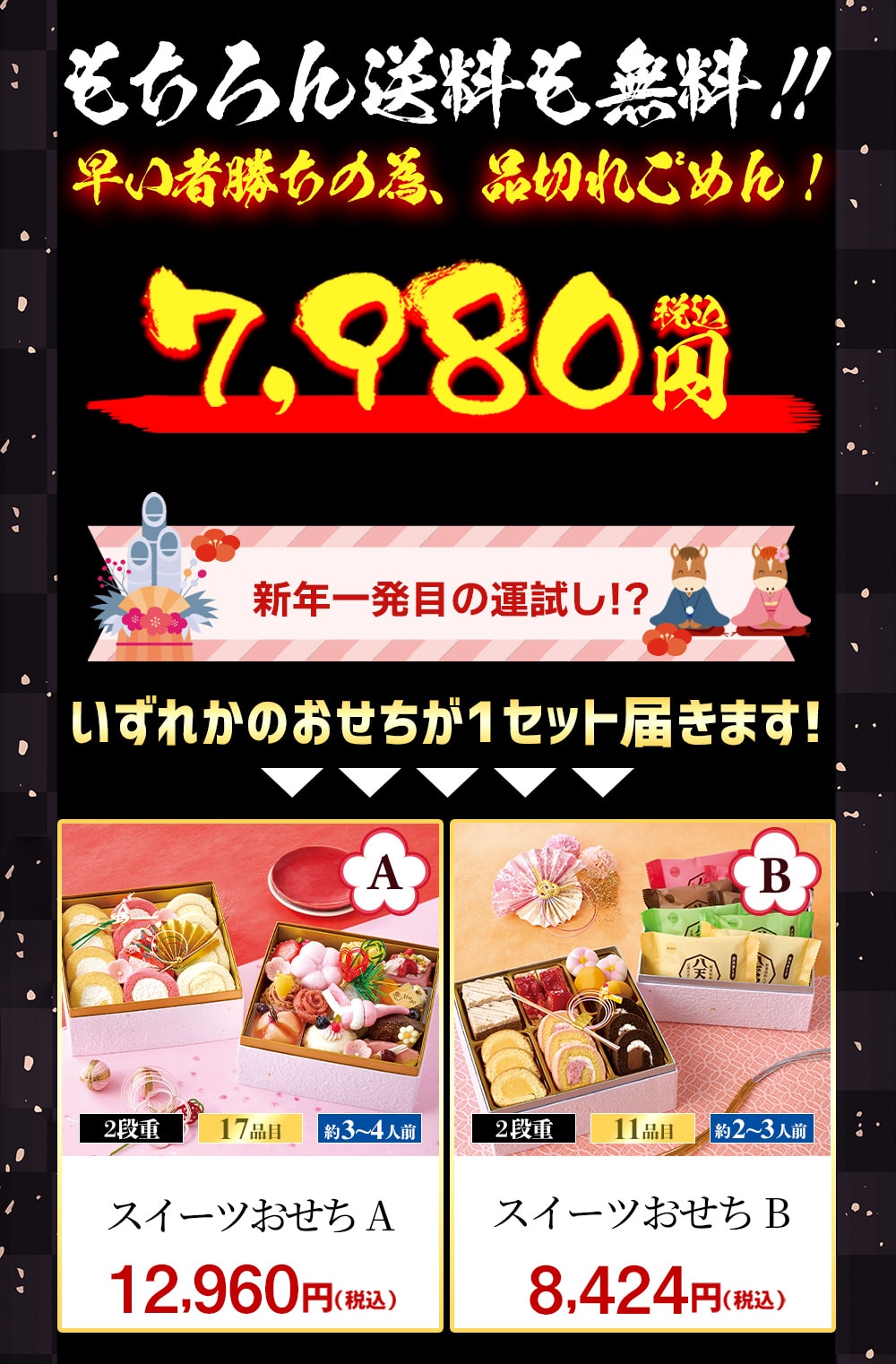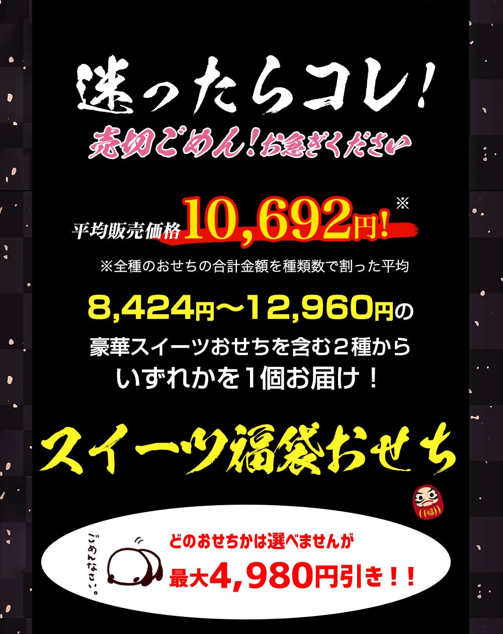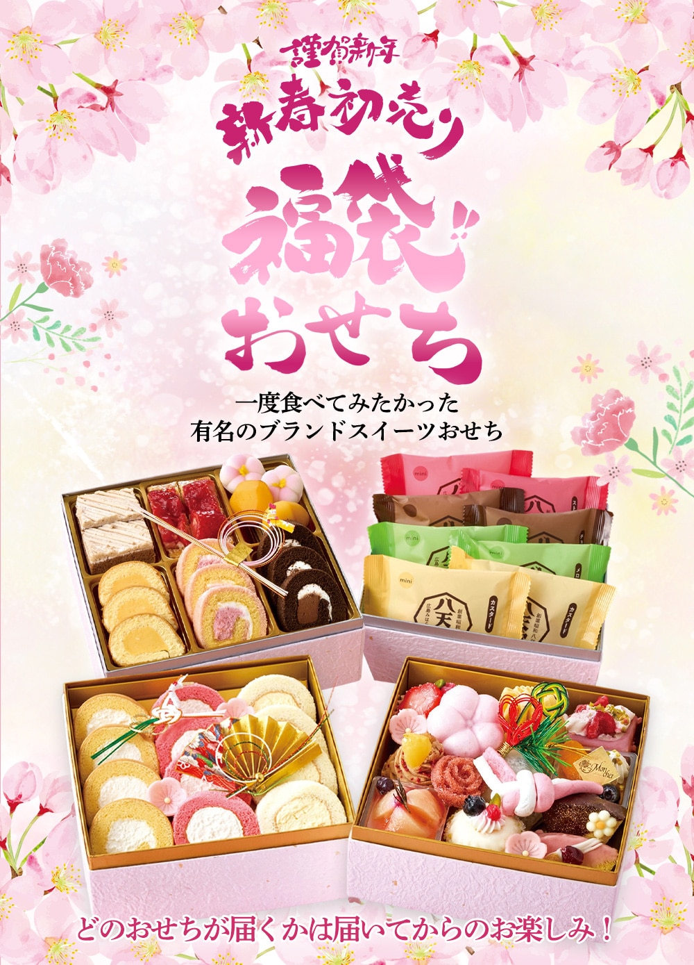 8,424円~12,960円の人気店のスイーツおせちの中からランダムで1セットが届く!
