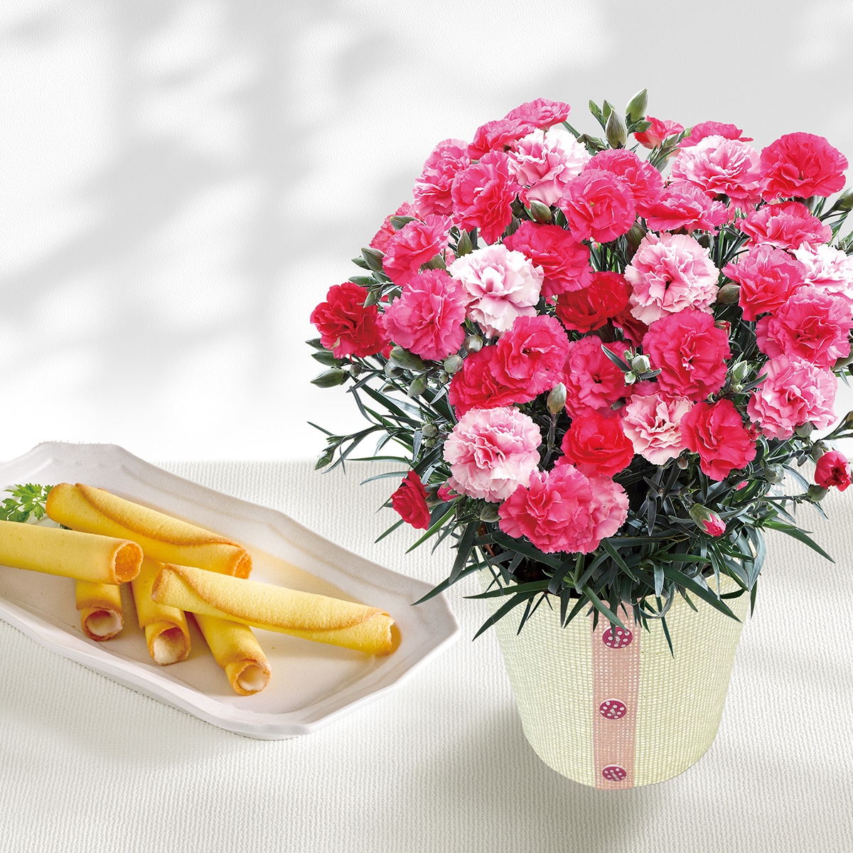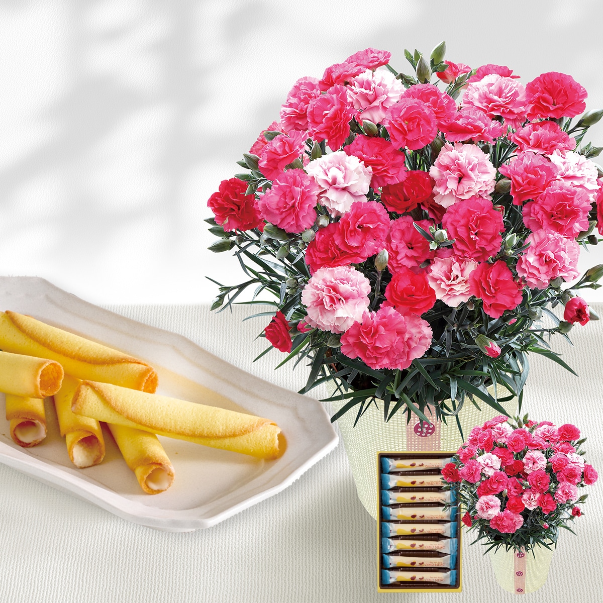 ■セット内容:カーネーション4号鉢、バスケット、お手入れのしおり、キャラメリゼバウム×6 ”商品サイズ:幅約12cm×高さ約25cm”■配送地域:無し
